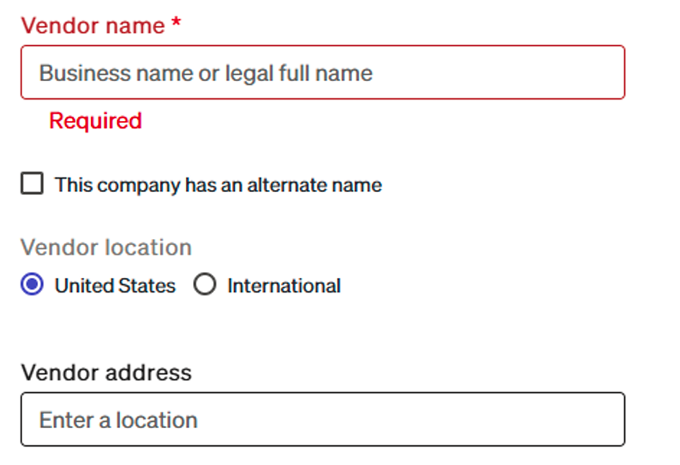 All vendors submitting payment requests for disbursement that will be captured on a 1099 tax form should select “I’m with a business” or “I’m an independent contractor.”