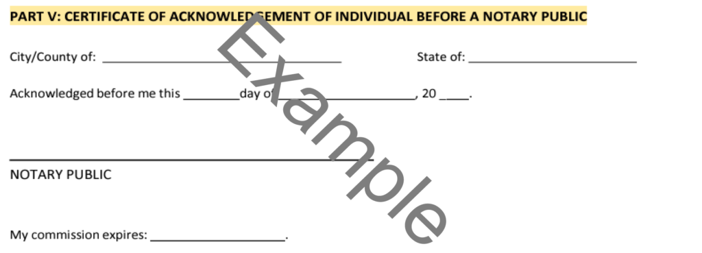 Part V: Certificate of Acknowledgment of Individual Before a Notary Public